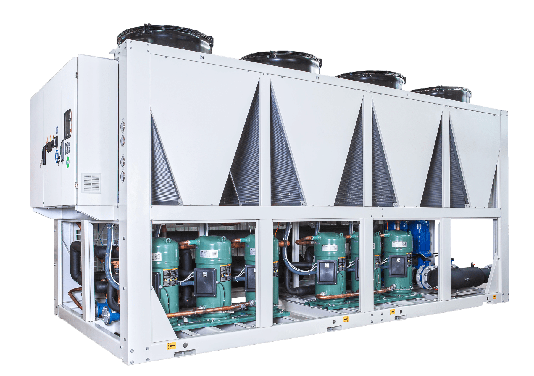 - Воздушные чиллеры: конденсаторы данного типа чиллеров охлаждаются воздухом и устанавливаются на улице или внутри помещения. Эти чиллеры компактны, удобны в монтаже и обслуживании, подходят для небольших и средних предприятий и систем кондиционирования.